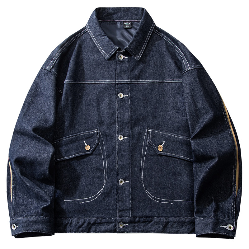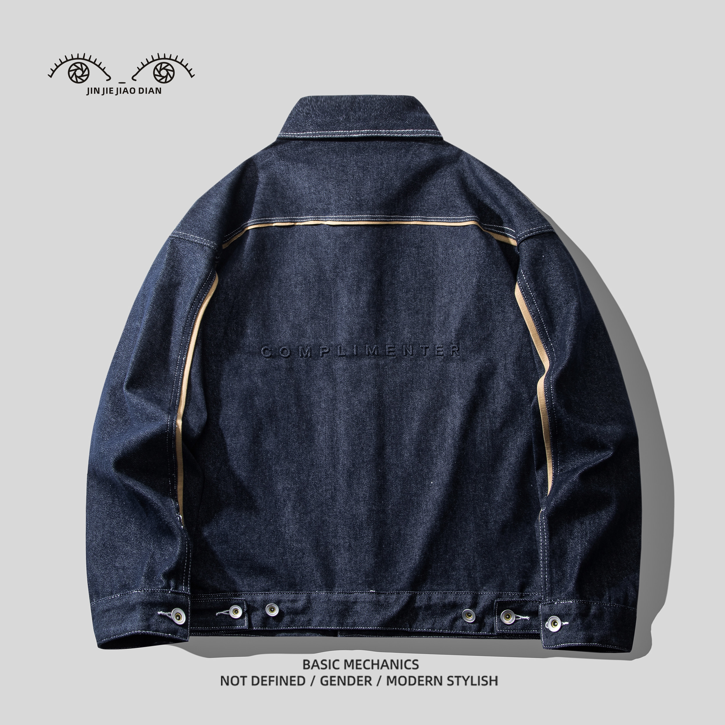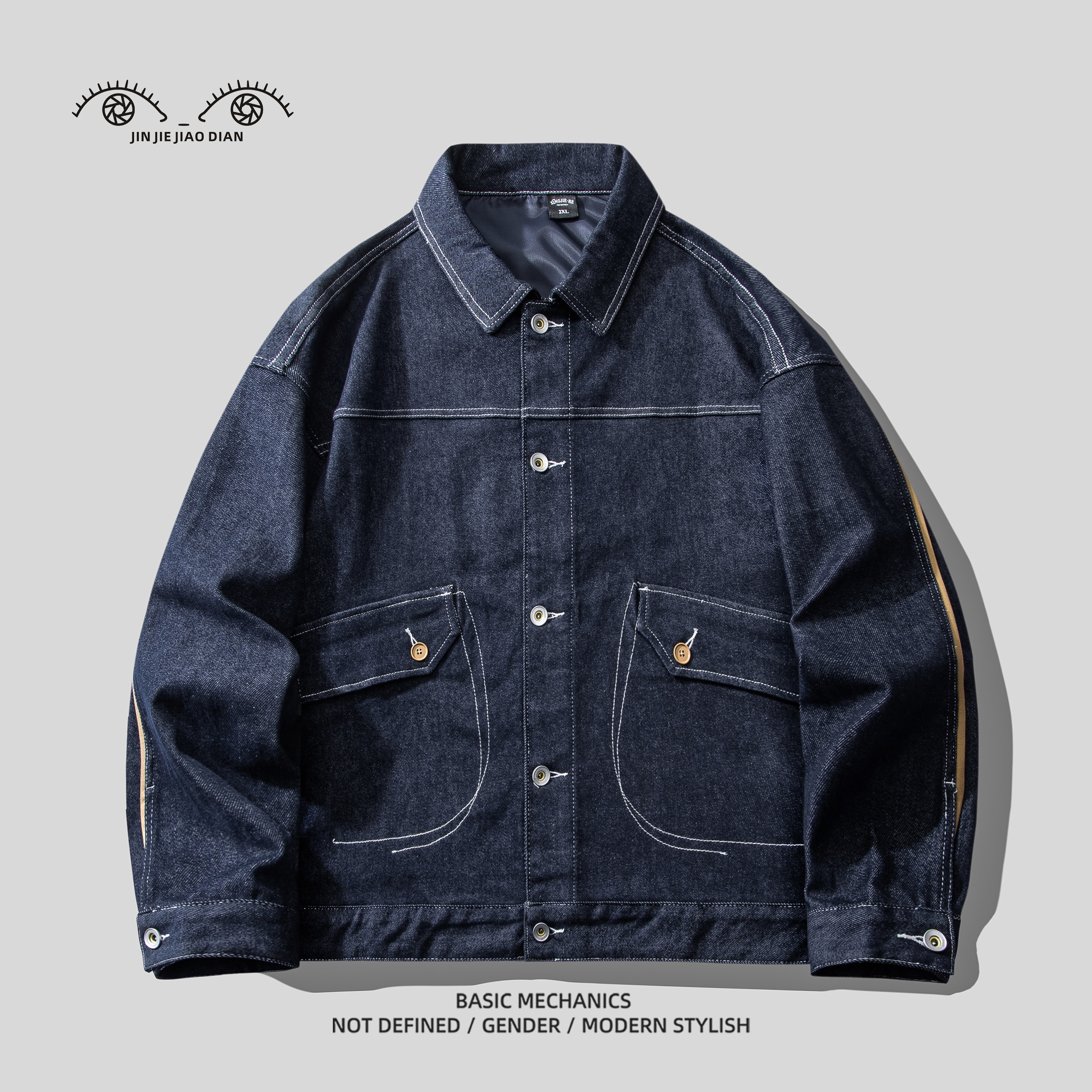 辑明线设计高端复古丹宁水洗牛仔外套男士春秋季高街美式工装夹克
