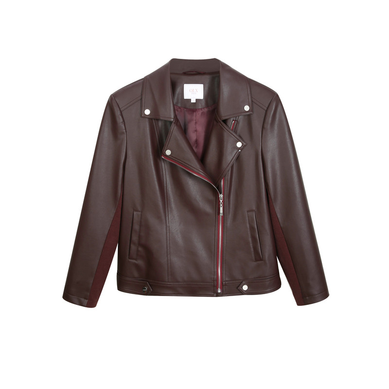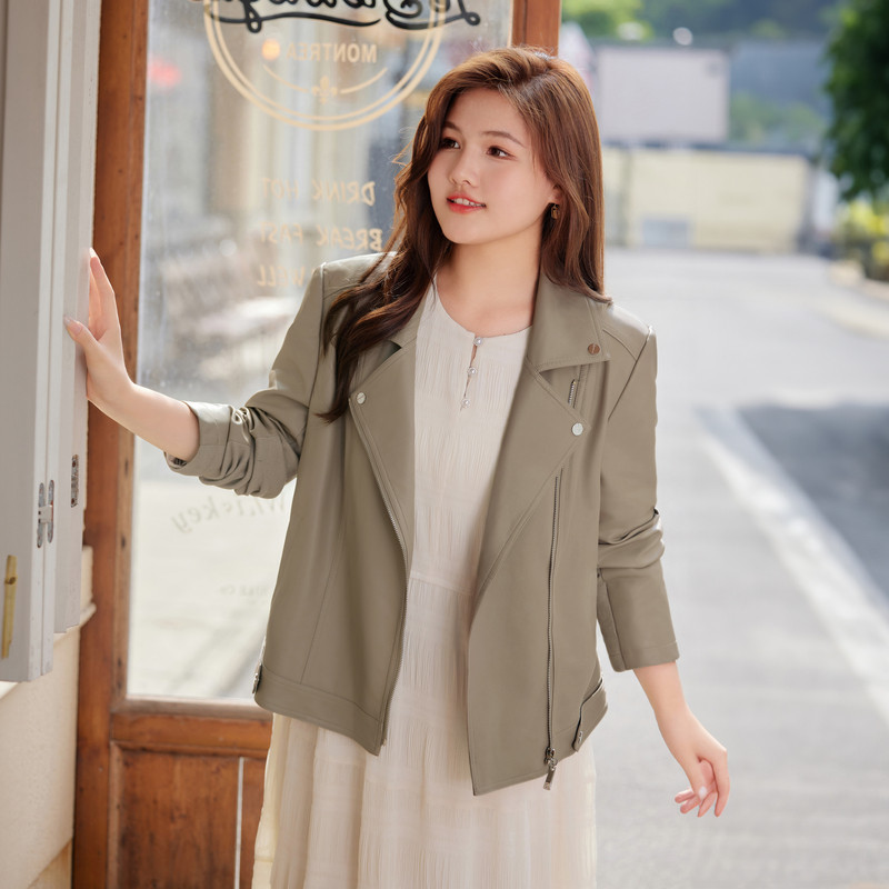 淘宝纤莉秀大码时尚女装,纤莉秀大码女装2023秋新品PU皮帅气机车风百搭显瘦皮衣外套QI4685