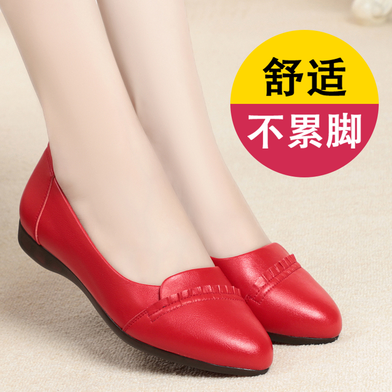 淘宝蓝心女鞋店,妈妈鞋子红色单鞋真皮软底平底皮鞋