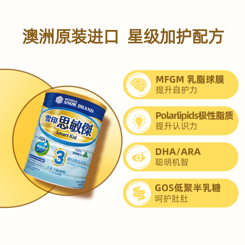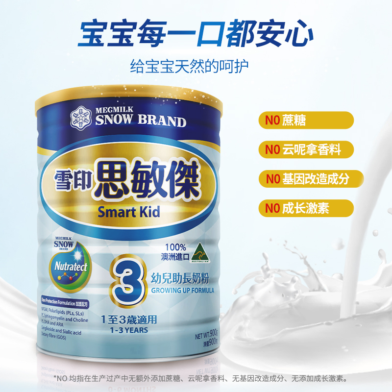 雪印思敏杰3段婴幼儿童成长配方牛奶粉澳洲原装进口1-3岁900g6罐