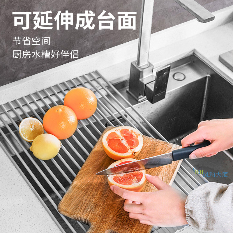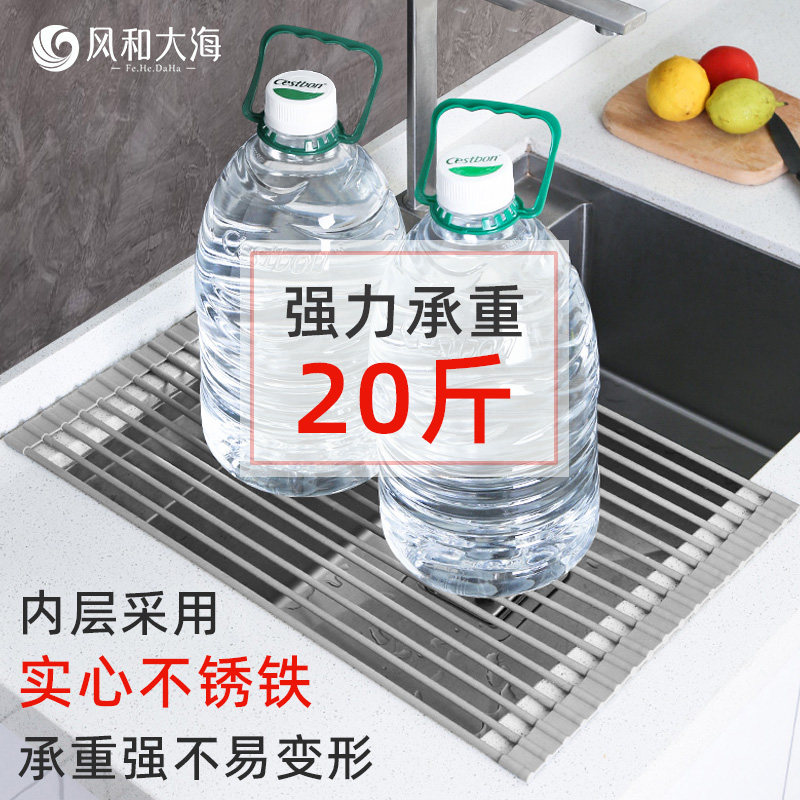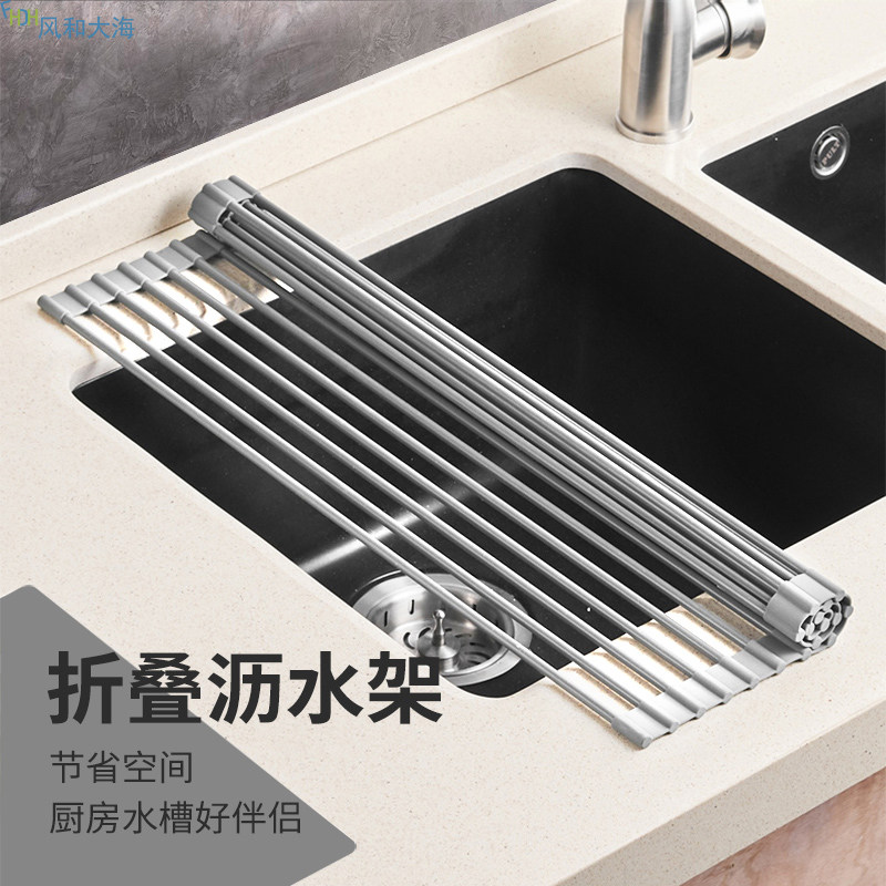 淘宝匠心优品风和大海,厨房沥水可折叠硅胶碗碟水槽收纳架