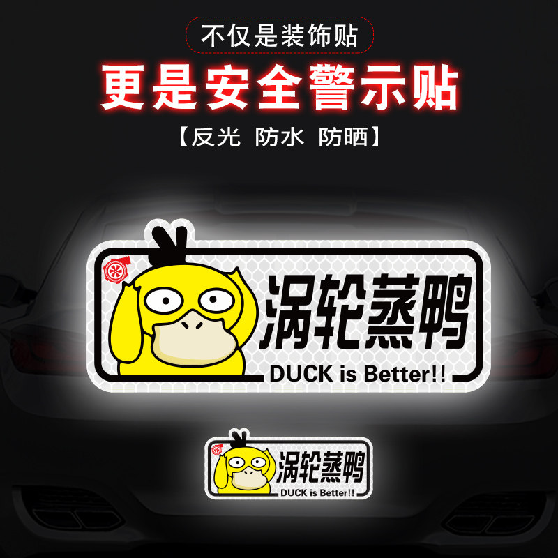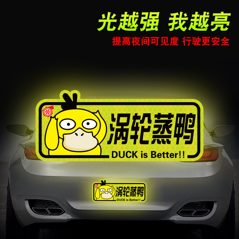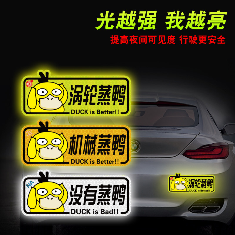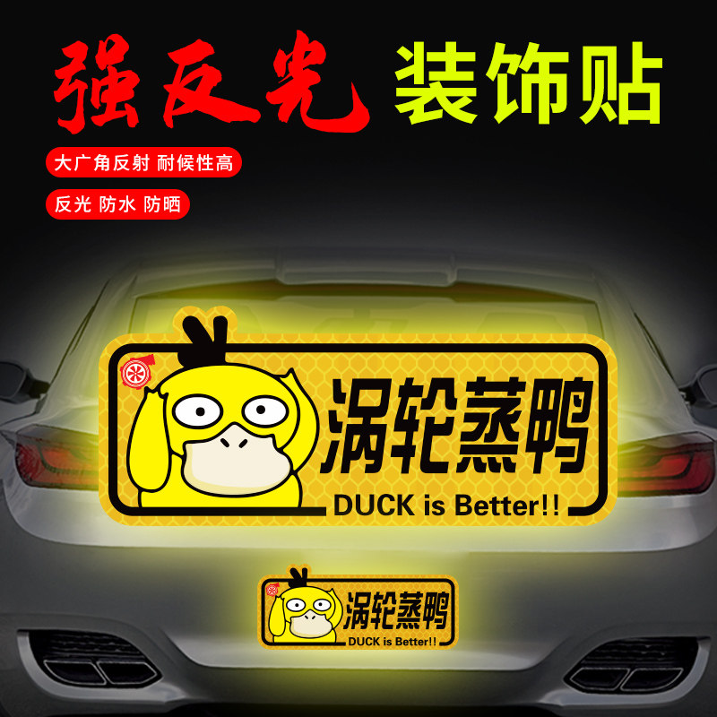 机械蒸鸭涡轮增压车贴强反光创意磁性贴车身划痕遮挡车尾装饰贴纸