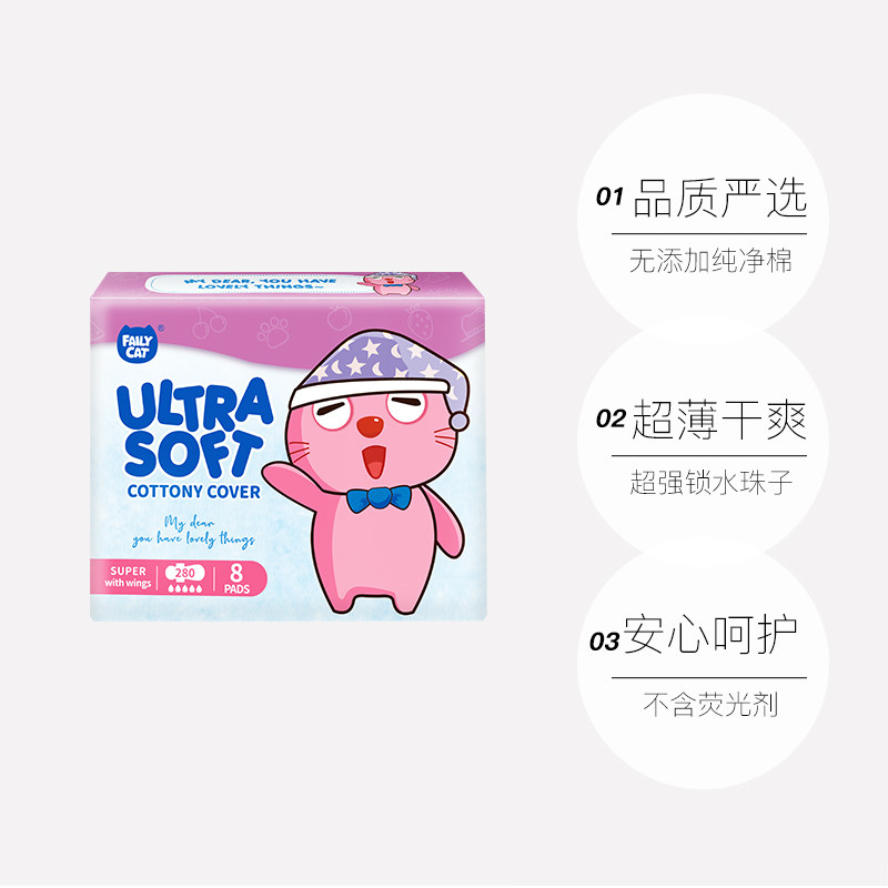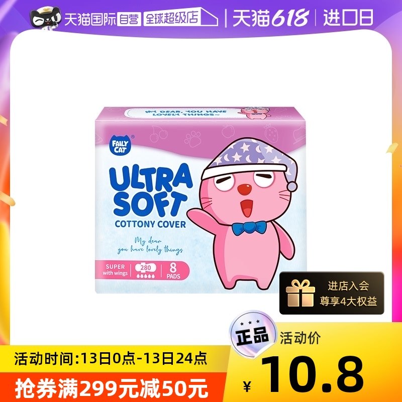天猫国际自营进口超市,猫小菲纯棉夜用卫生巾,超薄透气 无荧光剂
