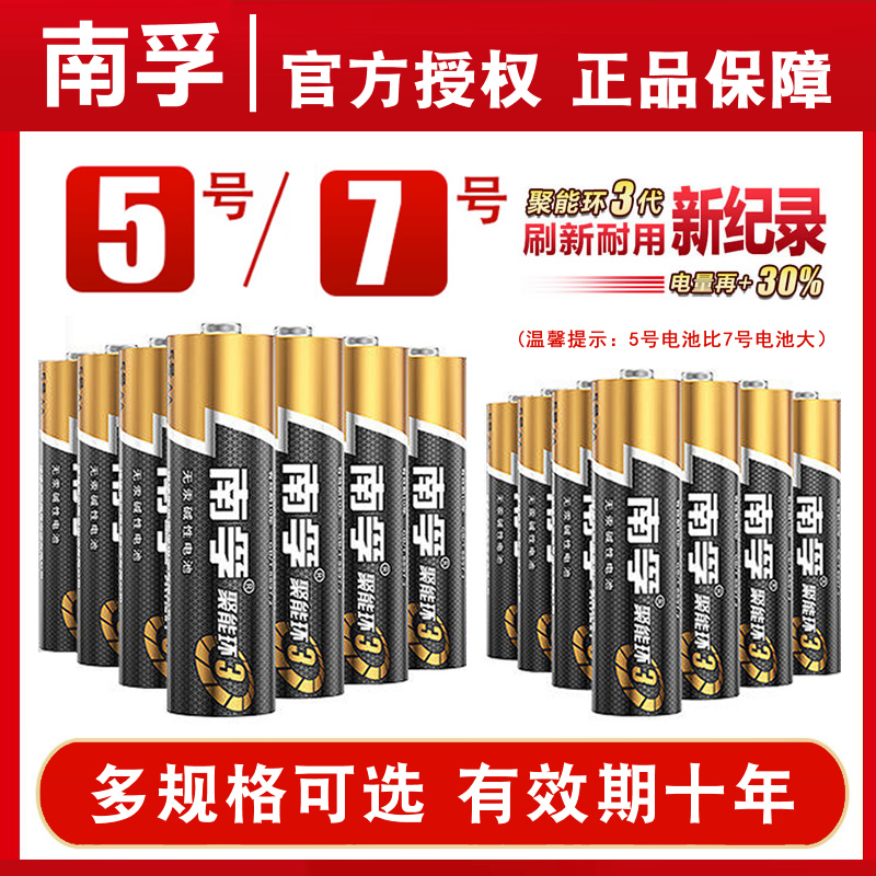 南孚碱性电池5号LR6五号儿童玩具电池7号批发AAA空调电视机遥控器鼠标挂钟闹钟表1.5V普通干七号6批发8粒12节