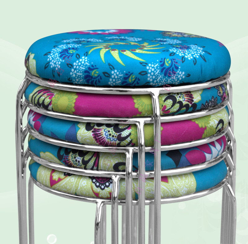 餐厅不锈钢色钢筋档口可叠圆凳子