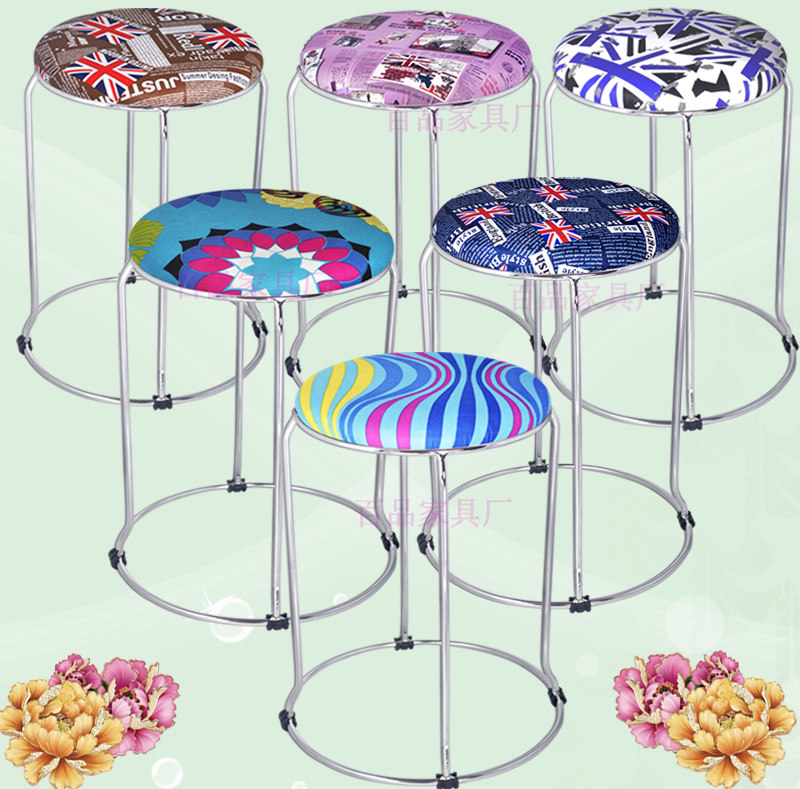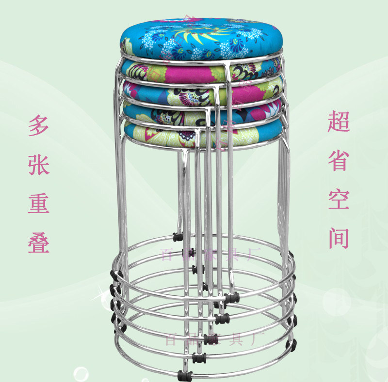 淘宝百品家具厂,餐厅不锈钢色钢筋档口可叠圆凳子