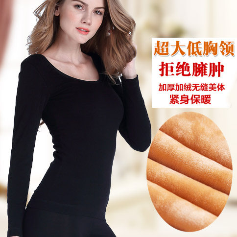 淘宝柔美飘飘内衣,2019秋冬大领内衣加绒塑身打底衫