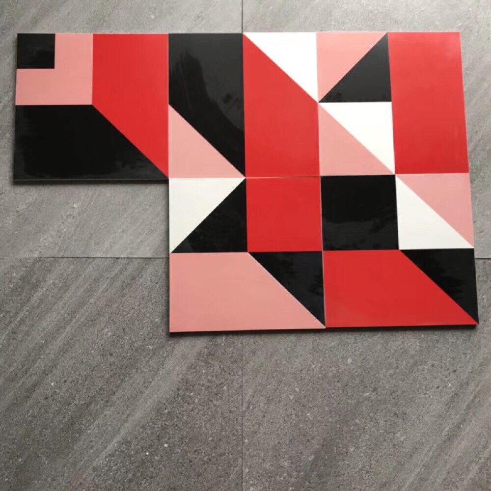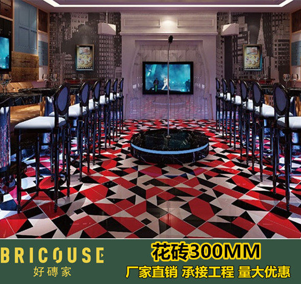 淘宝好砖家艺术瓷砖,欧美红白黑300mm餐厅客厅阳台花砖