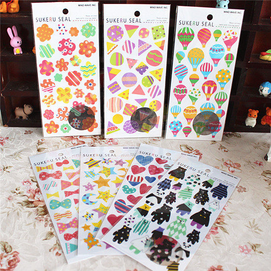 日本 SUKERU SEAL熊 蝴蝶 花朵平面 图案形状 DIY装饰贴纸