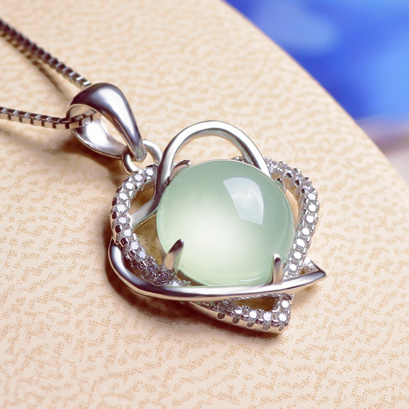 淘宝山鲁佐德1,葡萄石s925纯银心形女锁骨刻字吊坠,生日情人礼物 免费刻字 吊坠女锁骨 礼物送女友
