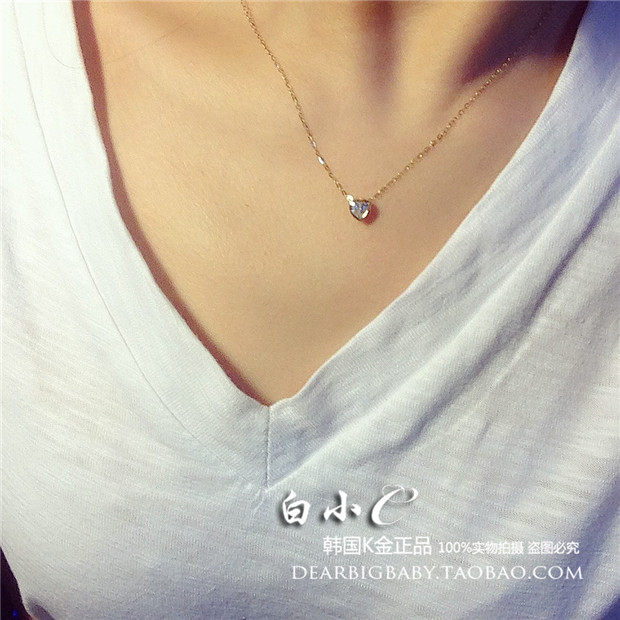 淘宝白小C珠宝 韩国14K金首饰,韩国进口黄金首饰纯单钻小小锁骨链