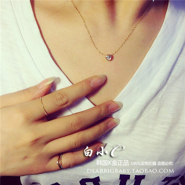 韩国进口黄金首饰 纯14K金项链 单钻小小桃心 纯金锁骨链颈链