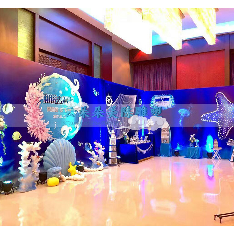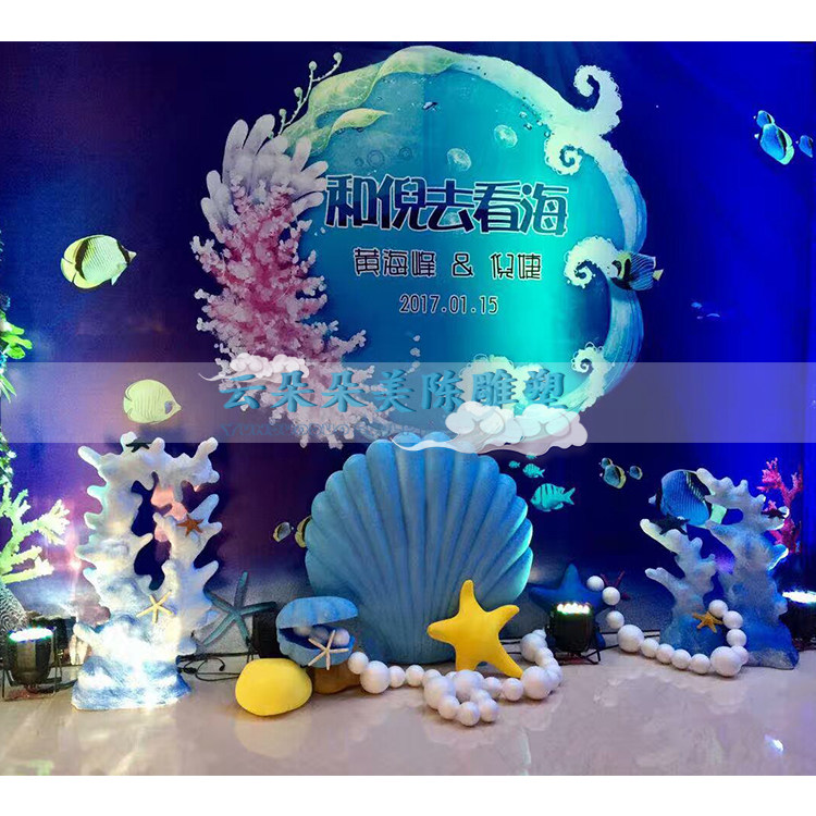 淘宝d[s258335852],蓝色海洋主题秀婚庆贝壳海螺雕塑
