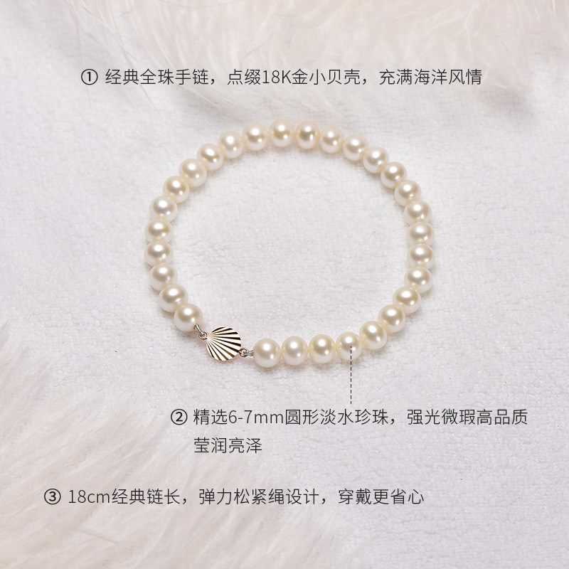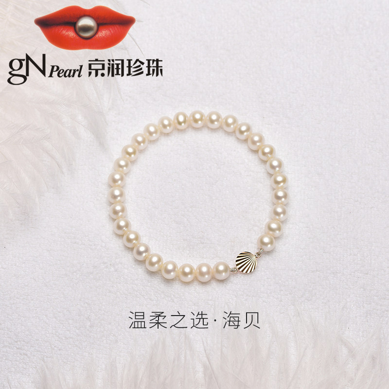 天猫京润珠宝旗舰店,京润珍珠海贝白色淡水6-7 a松紧绳,松紧绳设计 佩戴方便