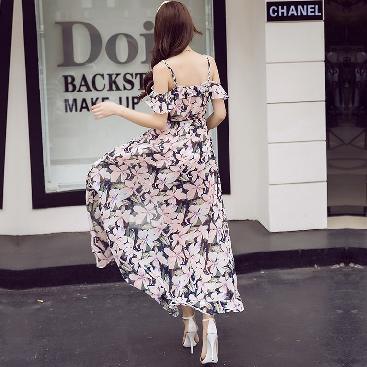 3231#欧美大牌一字肩荷叶边高腰郁金香花瓣燕尾摆度假连衣裙大码