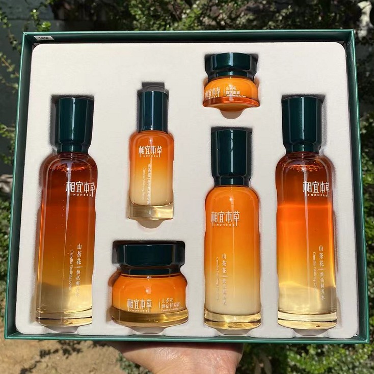 相宜本草山茶花精华液30ml精油精华水面霜乳液套装补水保湿紧致肌