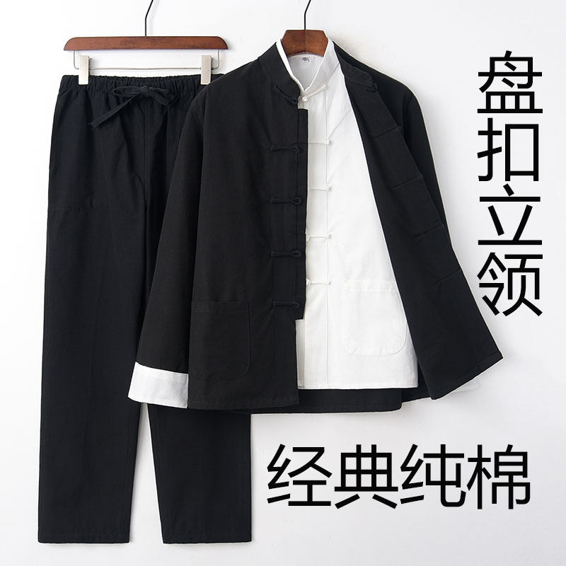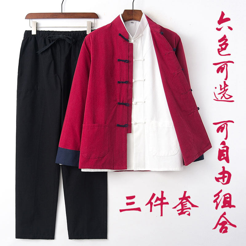 春秋新款唐装男青年潮牌中国风潮流复古风男装三件套纯棉套装汉服