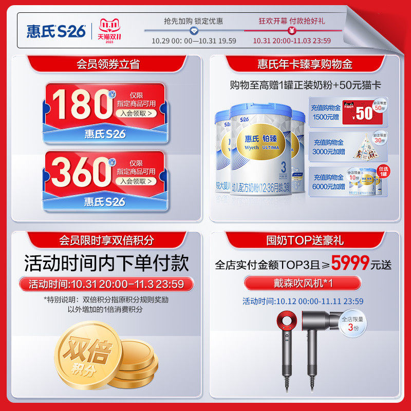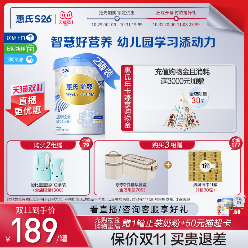天猫惠氏金宝宝旗舰店,惠氏铂臻4段儿童780g*2罐牛奶粉,生产日期:2023年3月1日-2023年3月31日