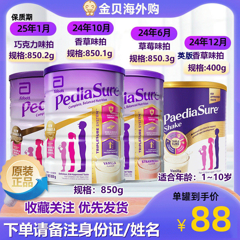 淘宝金贝海外购,24年10月份澳洲雅培小安素儿童宝宝营养奶粉香草味巧克力味草莓味