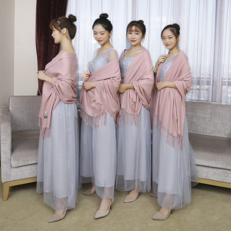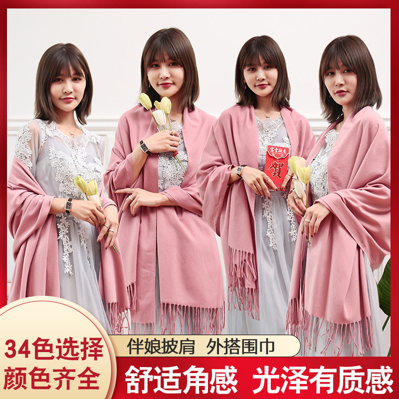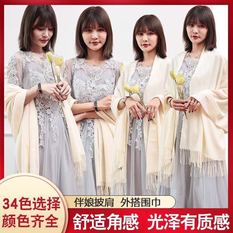 香槟伴娘披肩新娘婚纱晚礼服秋冬旗袍豆沙粉姐妹团闺蜜装外搭围巾
