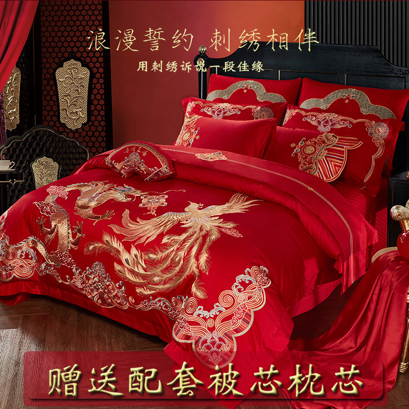 天猫祁氏家纺旗舰店,100s支全棉婚庆四件套大红色喜被子,140支长绒棉面料 赠豪华礼包 不褪色 不起球
