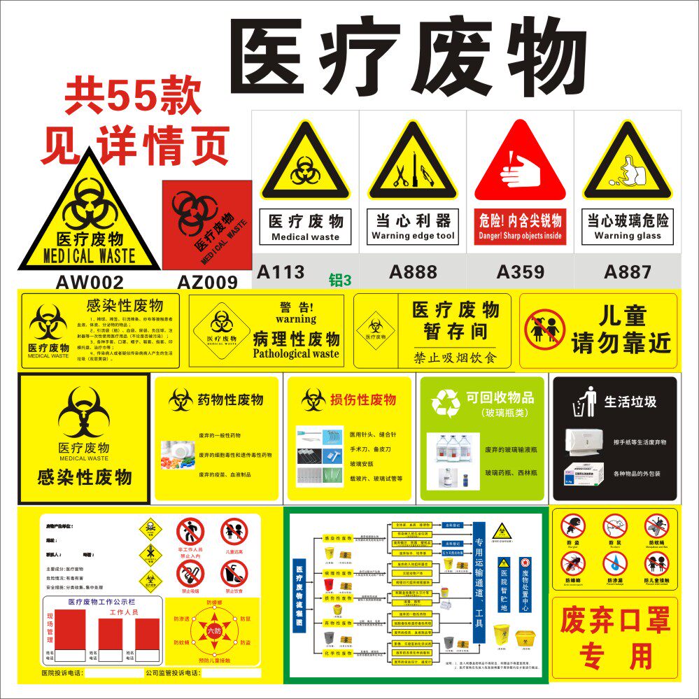 天猫默拜旗舰店,医疗废物标识 分类方法标贴标签标志牌 感染性损伤病理药物化学垃圾暂存间点六防处置流程图铝板不干胶医院图,多种类多材质多规格可选