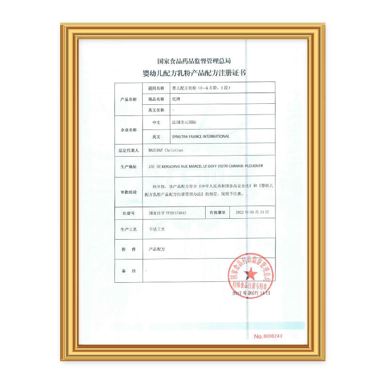 圣元优博婴幼儿配方牛奶粉1段法国原罐原装进口900g*1罐婴儿