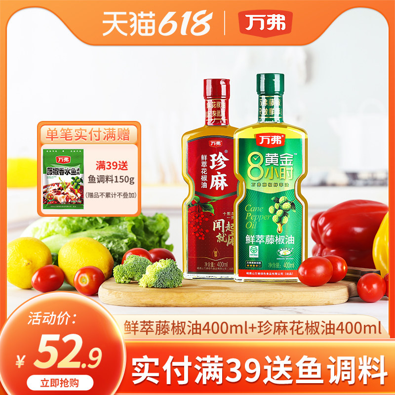 天猫万弗旗舰店,万弗大瓶400ml*2家用四川藤椒油,兼具香与麻,高性价比组合!玻璃包装,健康
