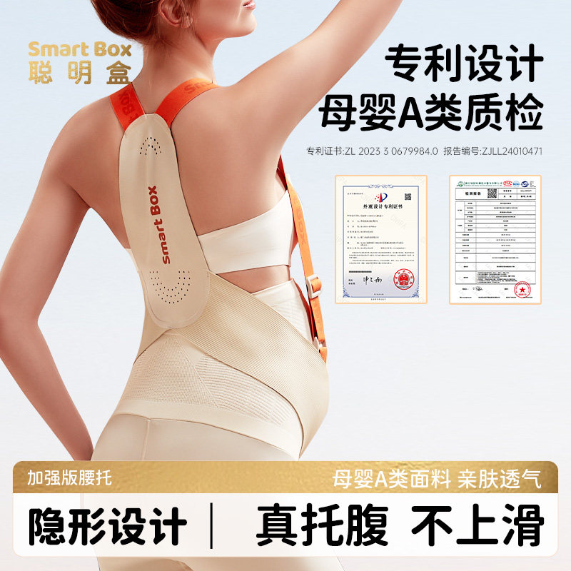 天猫聪明盒旗舰店,聪明盒医用型纳米级托腹带孕妇专用隐形孕晚大码腹部带护腰腰托,环抱式托腹 不勒肚 舒适裸感布 畅快不闷热