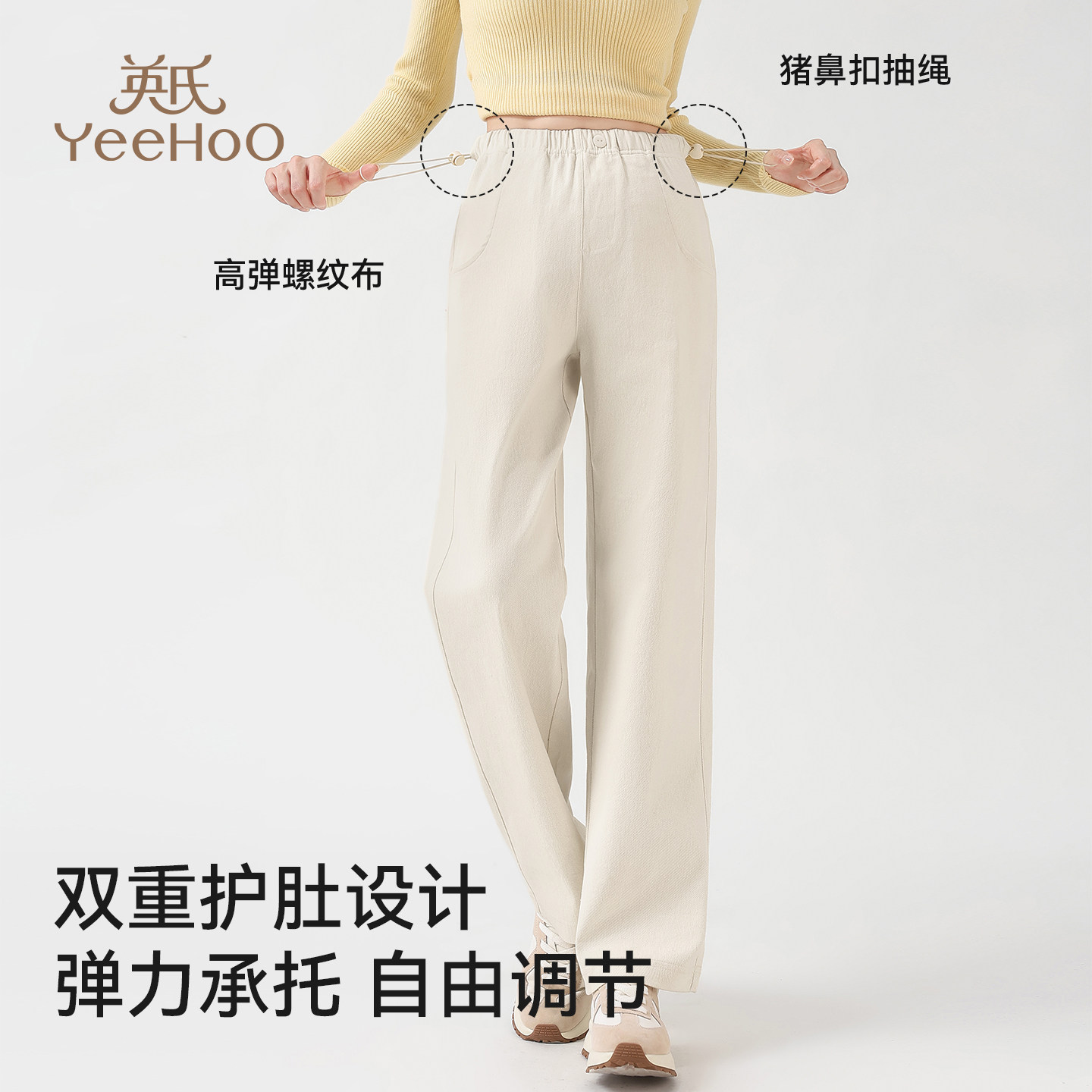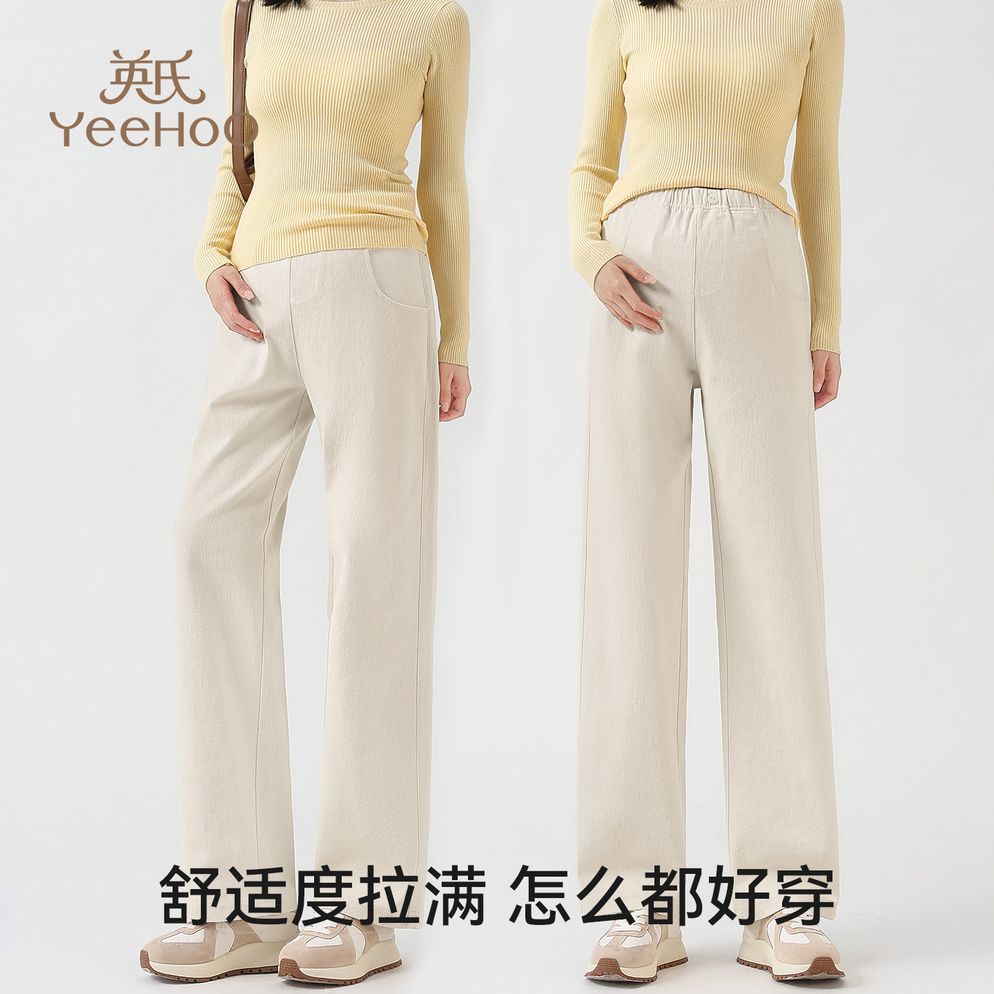 天猫yeehoo英氏纵之骋专卖店,英氏孕妇牛仔裤子无托腹阔腿裤,棉柔透气,弹力包容
