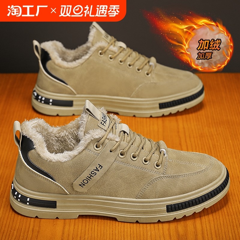 天猫天天特卖食品直营,男鞋冬季2024新款加绒保暖二棉鞋男低帮劳保工装板鞋工地干活厚底