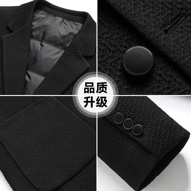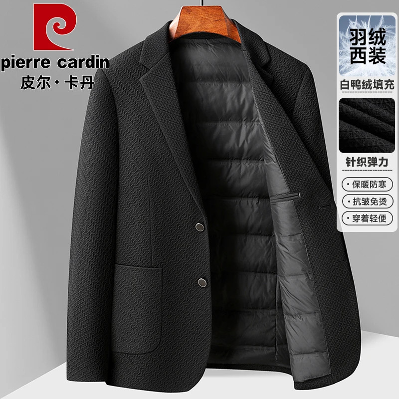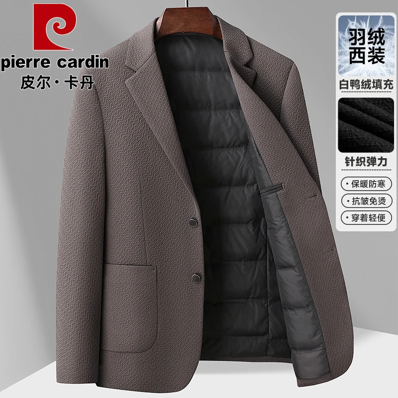 淘宝皮尓卡丹高档品质店,皮尔卡丹轻奢羽绒西服男士轻薄羽绒服冬季西装领保暖针织单西P606