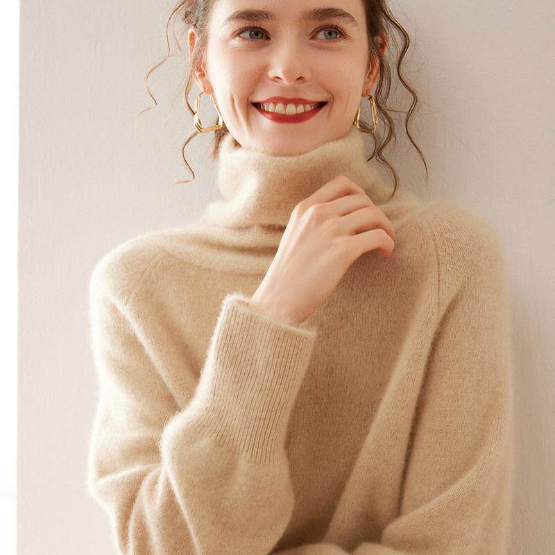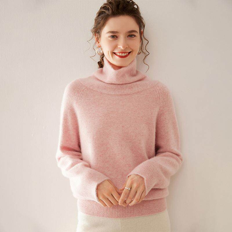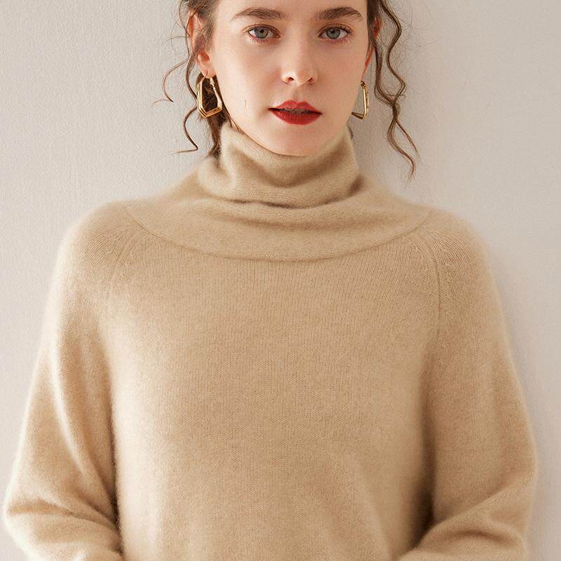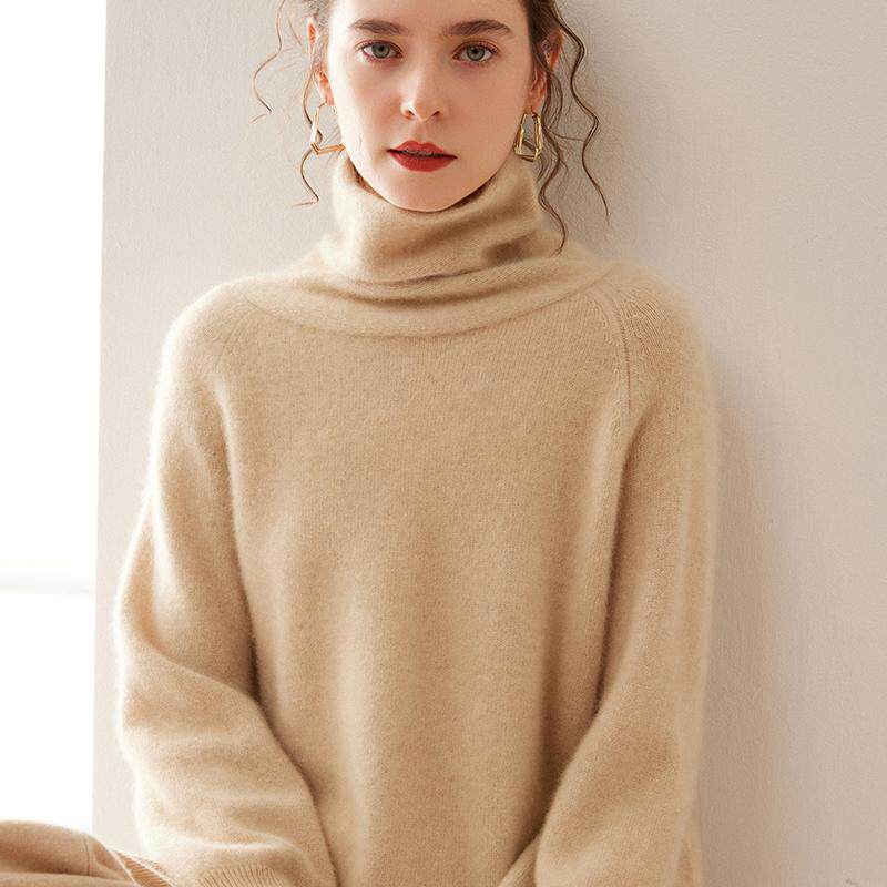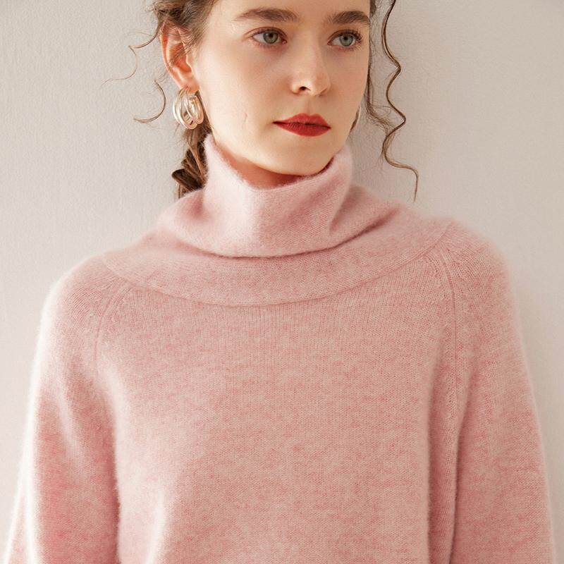 100%山羊绒衫女双股加厚堆堆高领纯色针织衫毛衣宽松内搭打底上衣