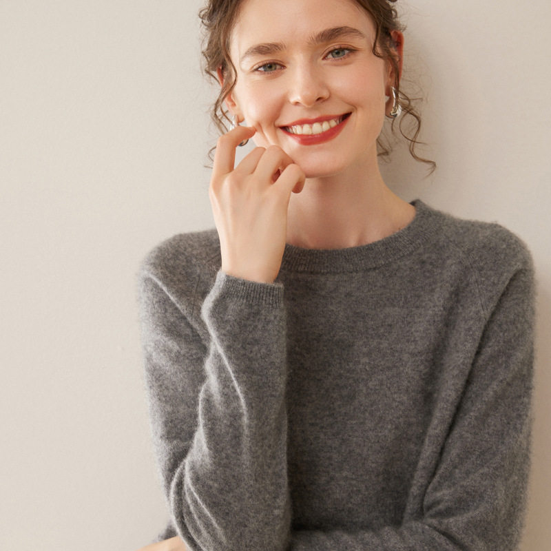 圆领100%纯山羊绒衫女纯色显瘦宽松通勤套头针织打底衫经典百搭款