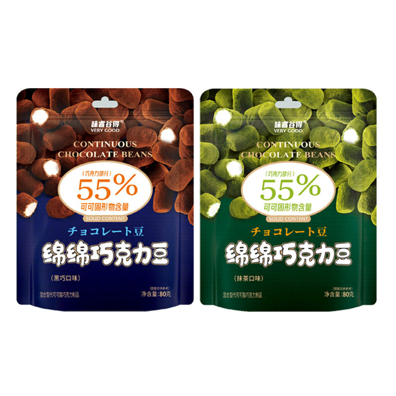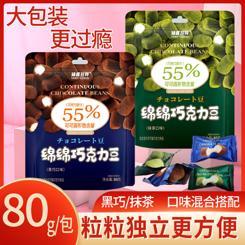 淘宝晨曦甄选百货,绵绵巧克力豆黑巧抹茶味夹心棉花软糖独立包装糖果袋装喜糖