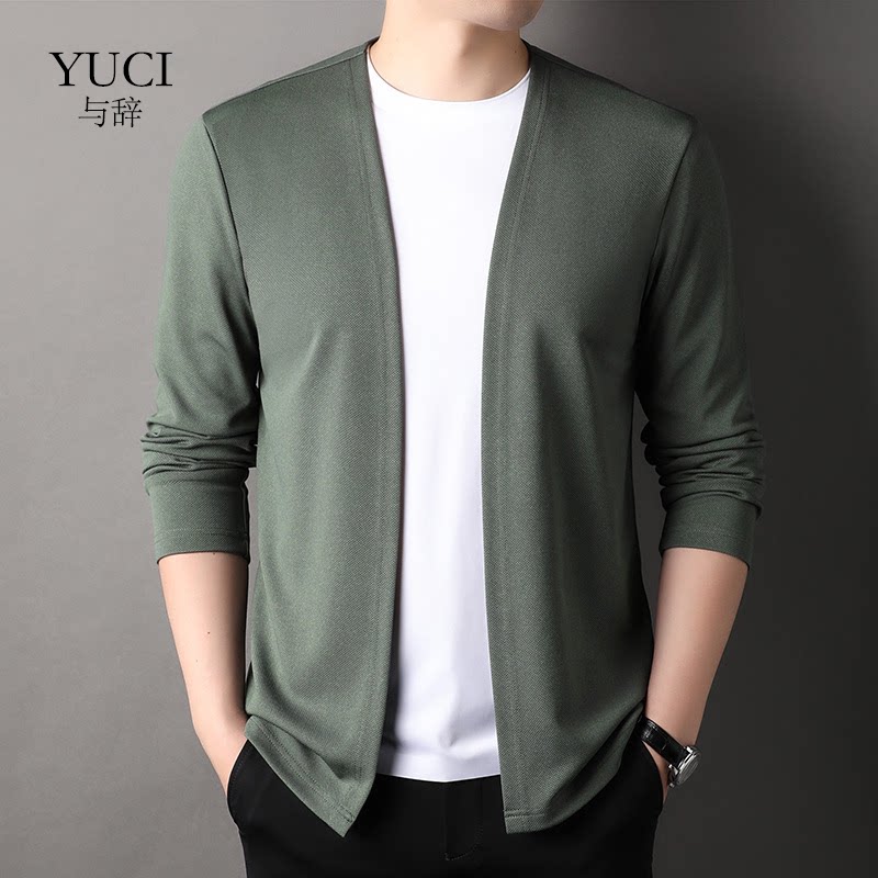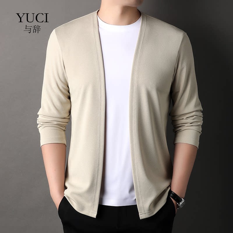 YUCI秋季新款纯色针织男士T恤休闲针织衫纯色时尚韩版男装外套