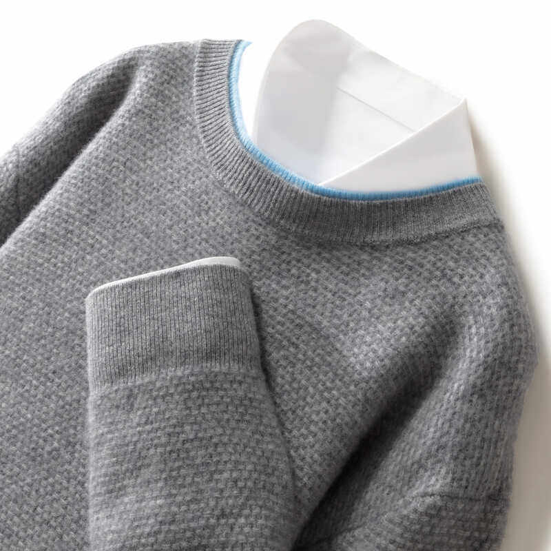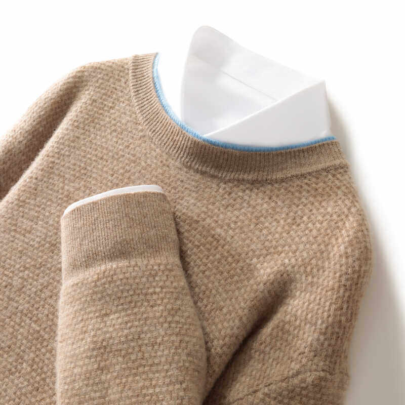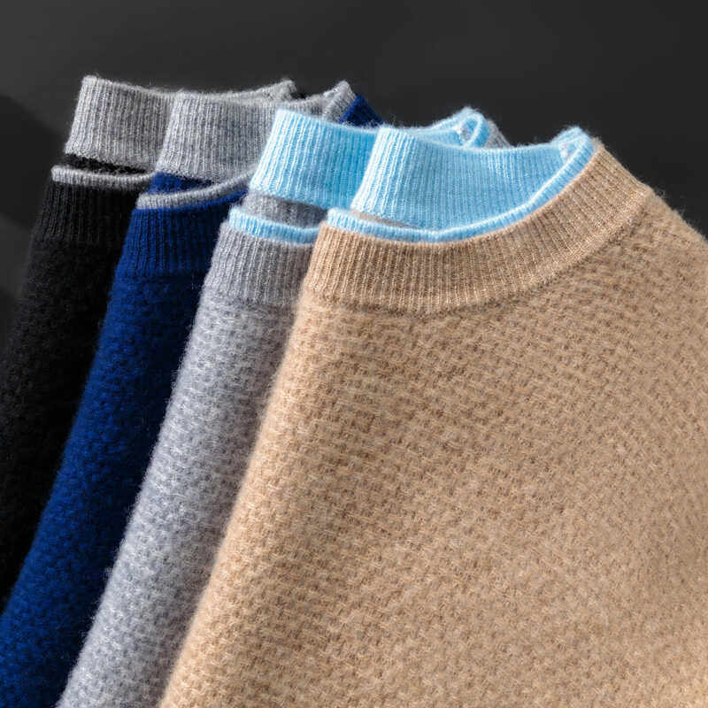 淘宝梦茜韵高端羊绒衫工厂直销店,2024秋圆领100%纯羊绒衫男毛衣