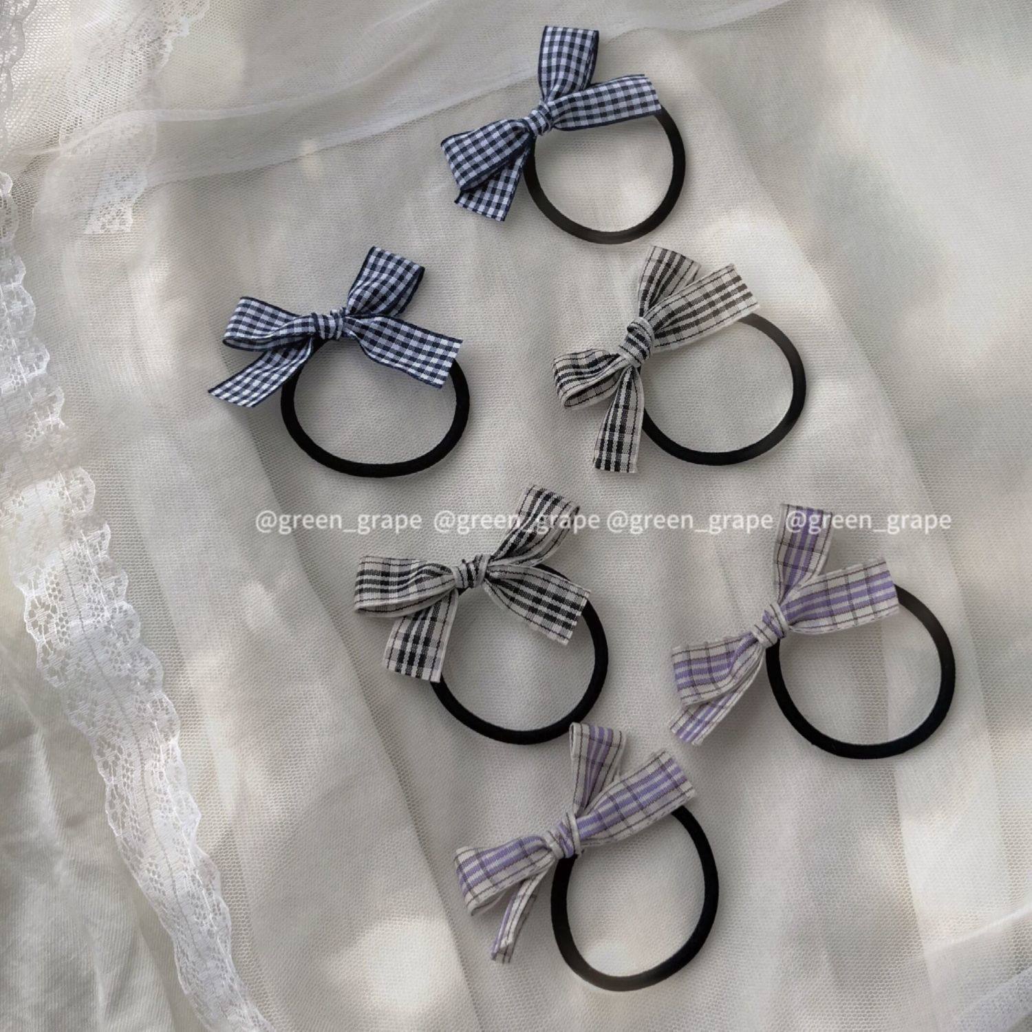 淘宝萝伊发饰,greengrape小心意~氛围感可爱格子蝴蝶结发圈学院风ins麻花辫头绳