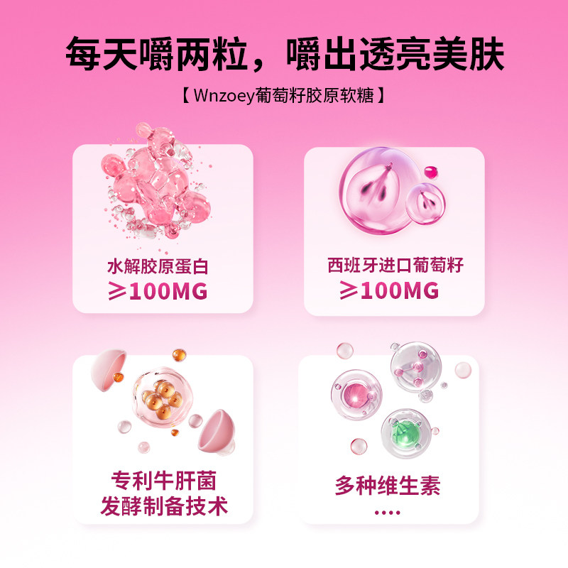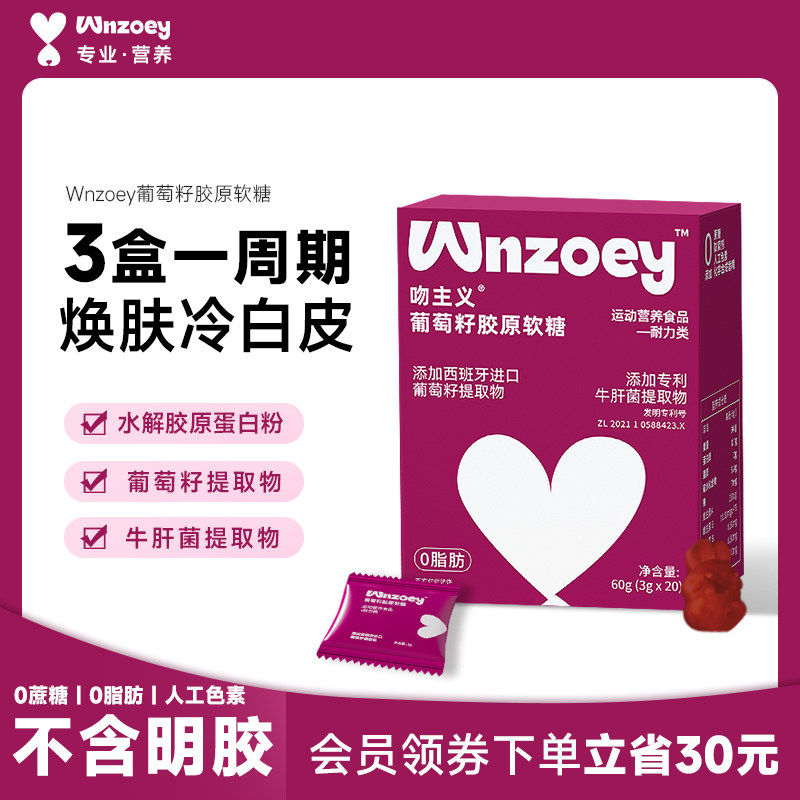 天猫吻主义旗舰店,Wnzoey葡萄籽胶原软糖牛肝菌提取,每天嚼两粒 嚼出透亮美肌
