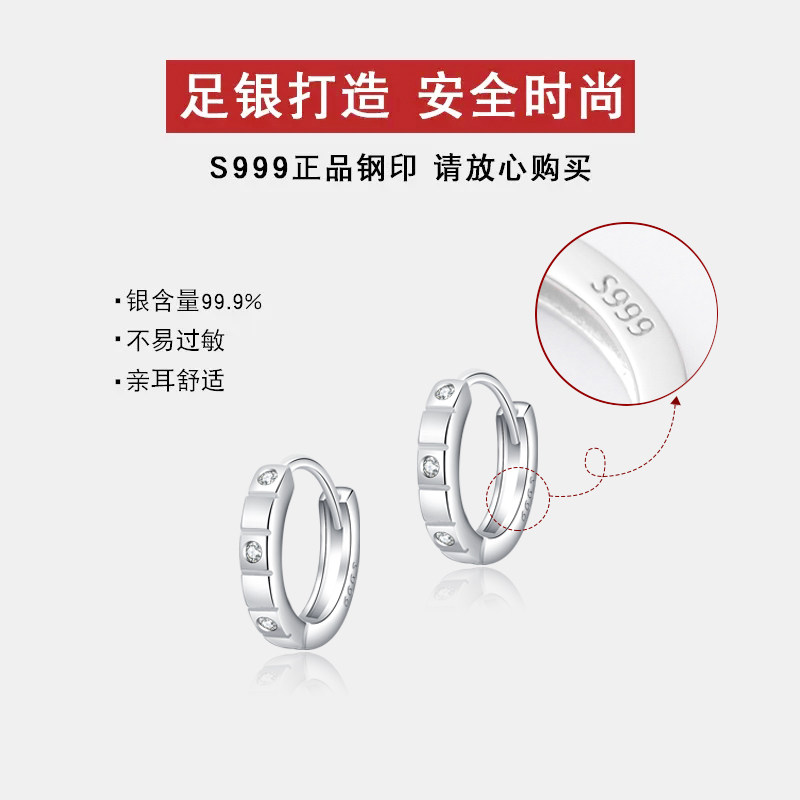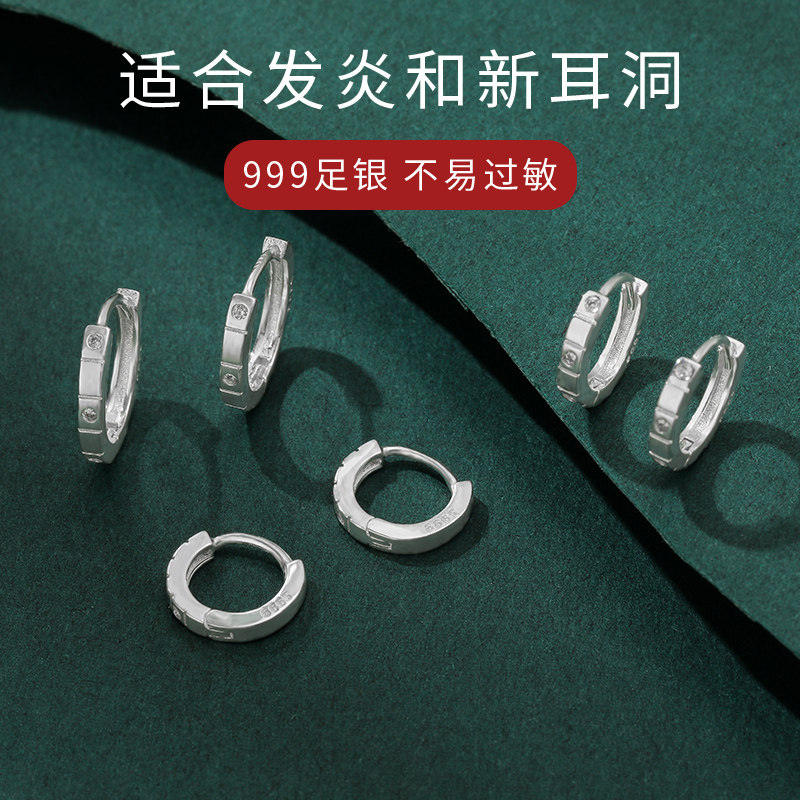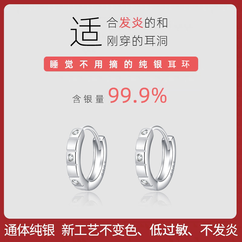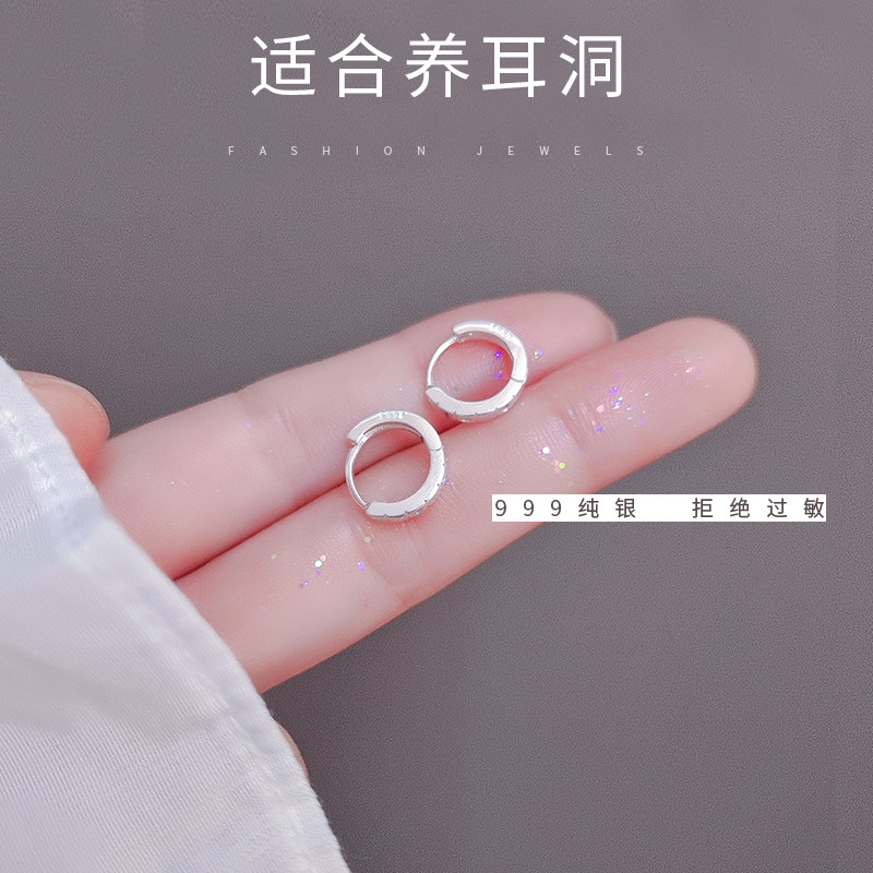 999纯银养耳洞耳钉女素圈耳环睡觉免摘耳扣气质耳圈耳骨钉耳饰品