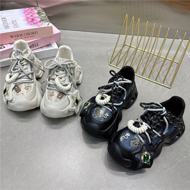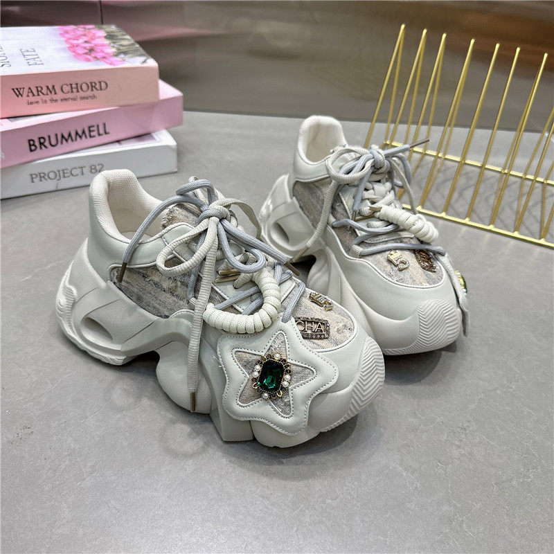 ins超火牛仔布水钻星星老爹鞋女炸街时尚休闲鞋小众增高运动鞋潮
