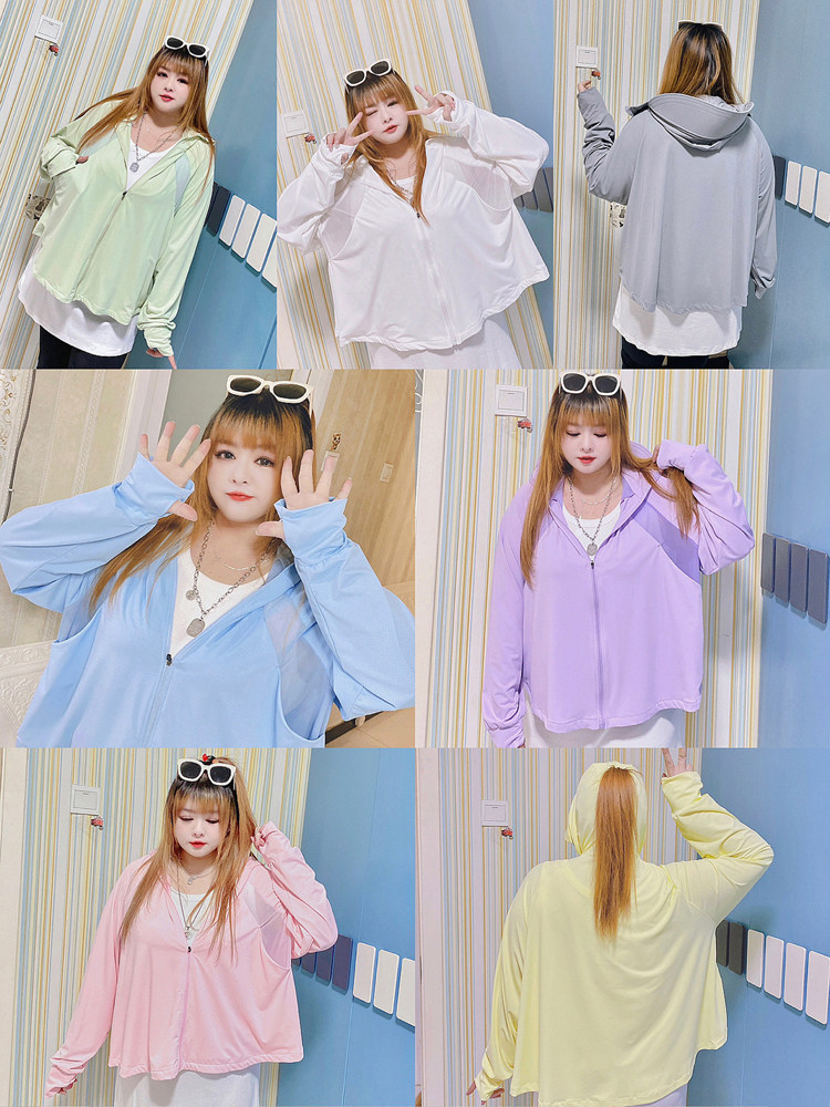 淘宝HELLO胖妞大码女装,300斤大码女糖果色短款防晒衣胖