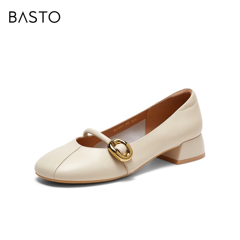 百思图23秋季商场新款法式玛丽珍中跟圆头…
