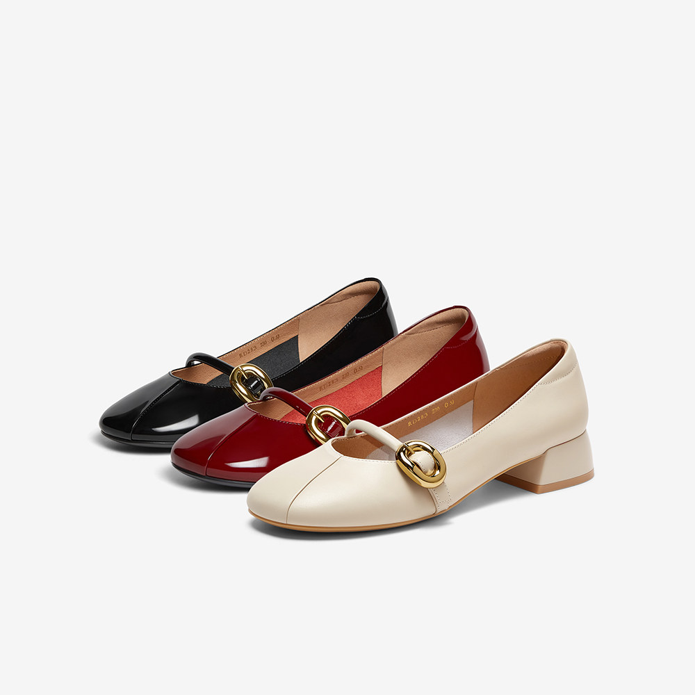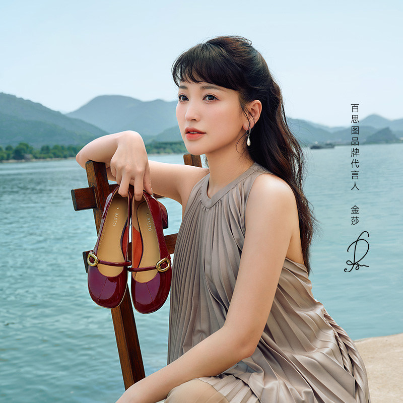 淘宝四季代购,百思图23秋季商场新款法式玛丽珍中跟圆头拼接浅口女单鞋RD283CQ3