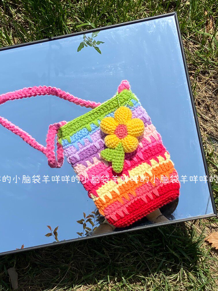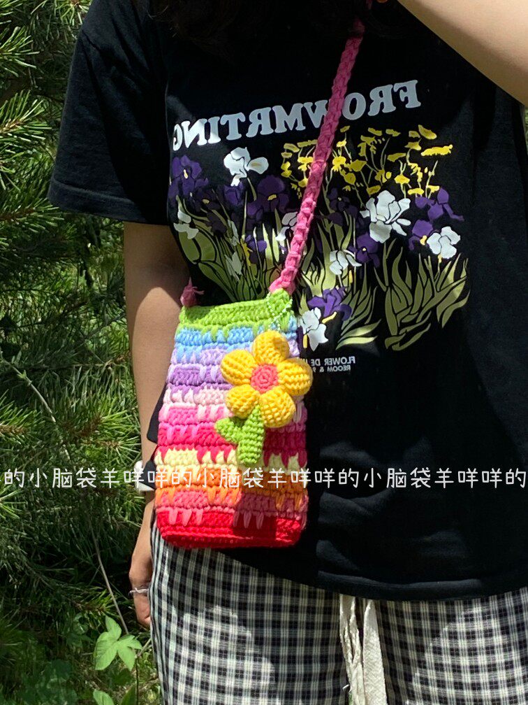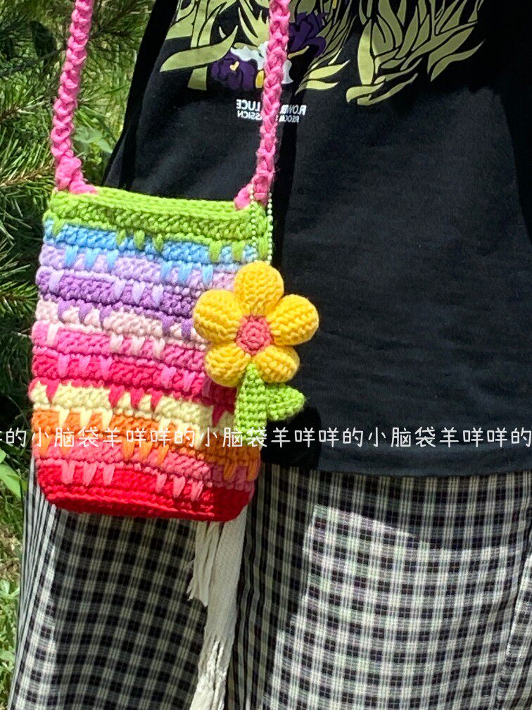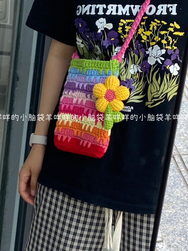 DIY多巴胺彩虹斜挎包手机包容量大毛线编织材料包自制礼物可爱
