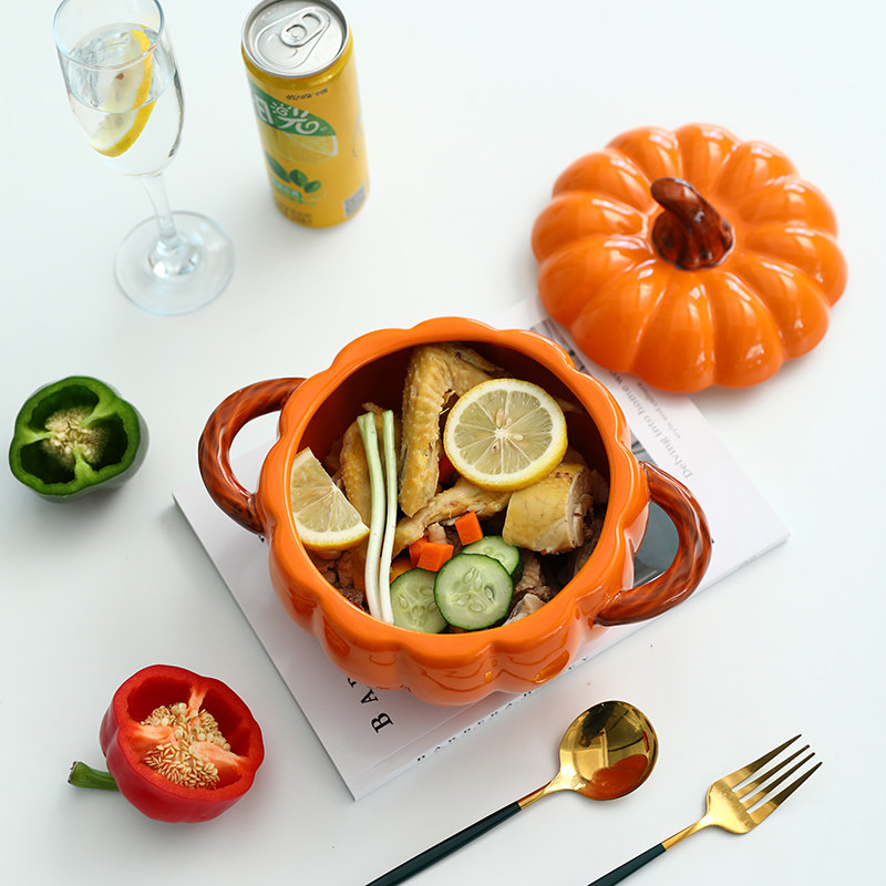 天猫姿茹婷旗舰店,姿茹婷南瓜汤锅带盖陶瓷汤盆,可进微波炉烤箱