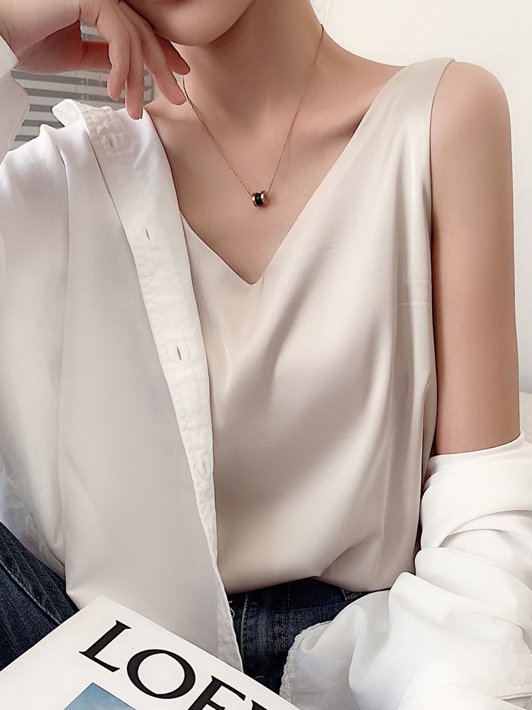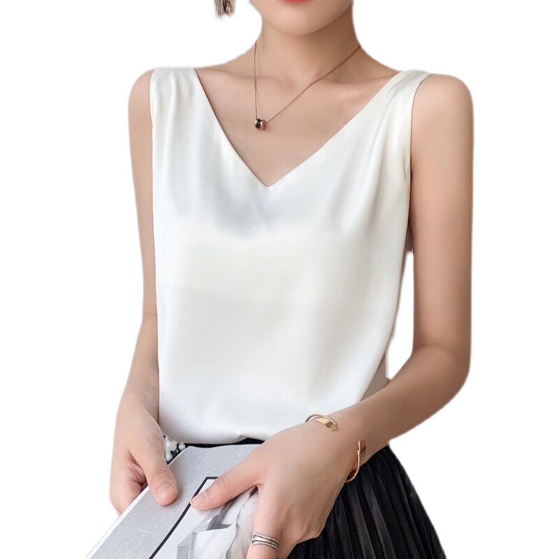真丝吊带背心女内搭西装白色黑色打底缎面桑蚕丝上衣小夏季v领