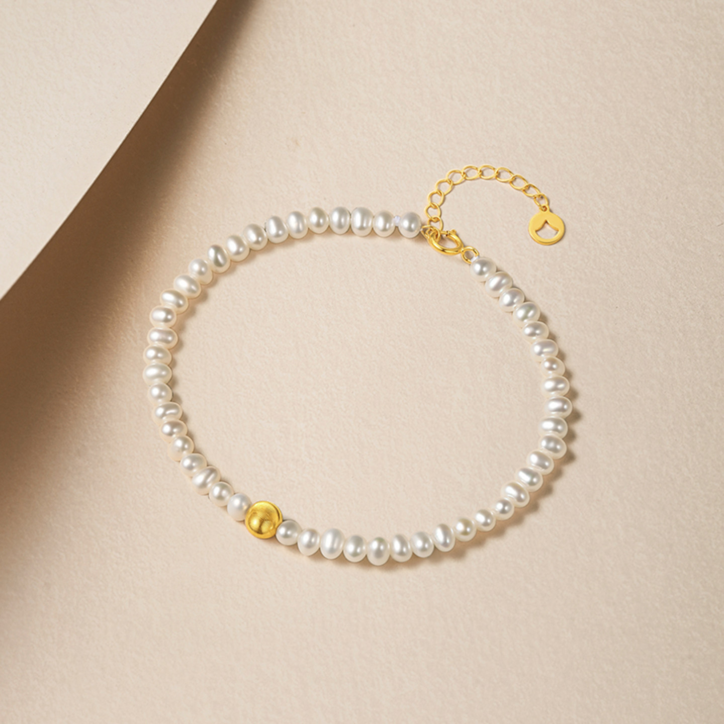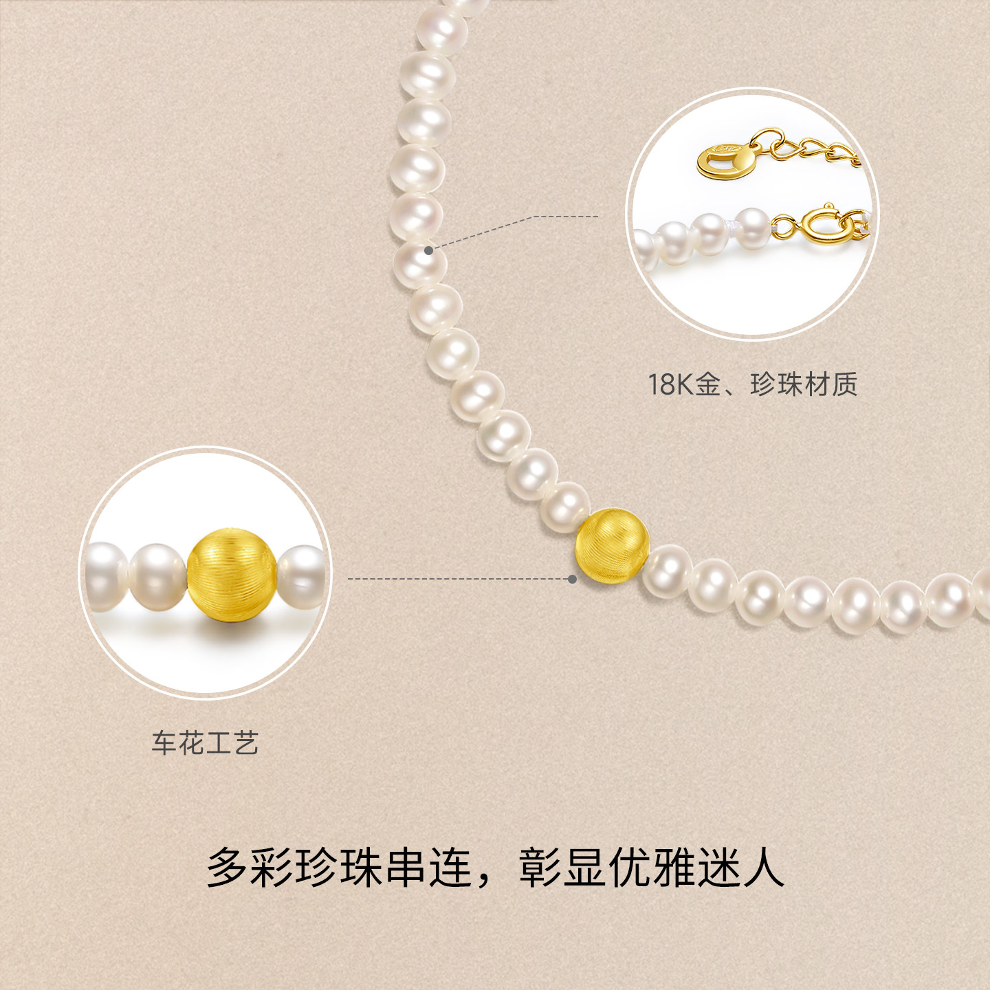 天猫周六福旗舰店,T周六福珍珠手链女款黄18K金优雅珍珠手饰送女友圣诞礼物,珍珠串联 优雅迷人