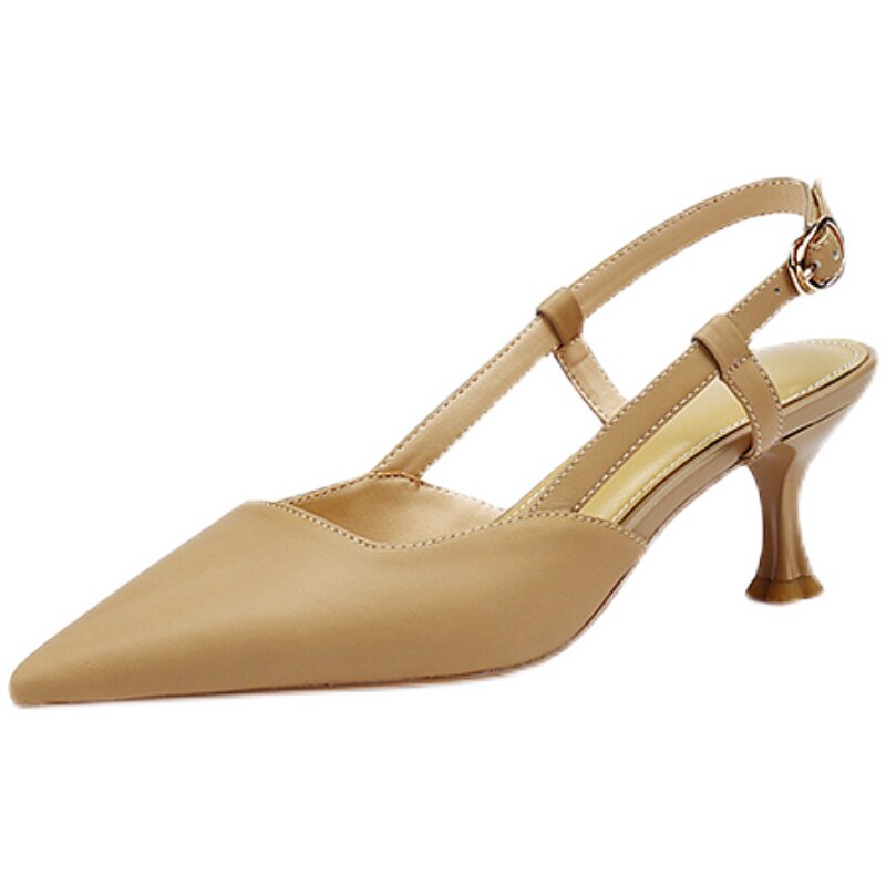 2023夏季新款杏色尖头浅口高跟鞋
