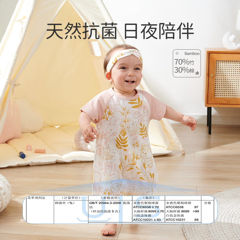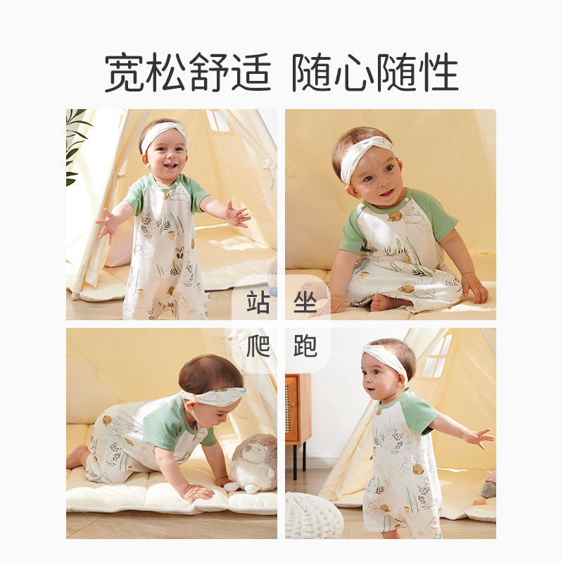 欧孕宝宝睡袋夏季竹棉纱布婴儿薄夹棉睡裙儿童短袖背心空调房睡衣